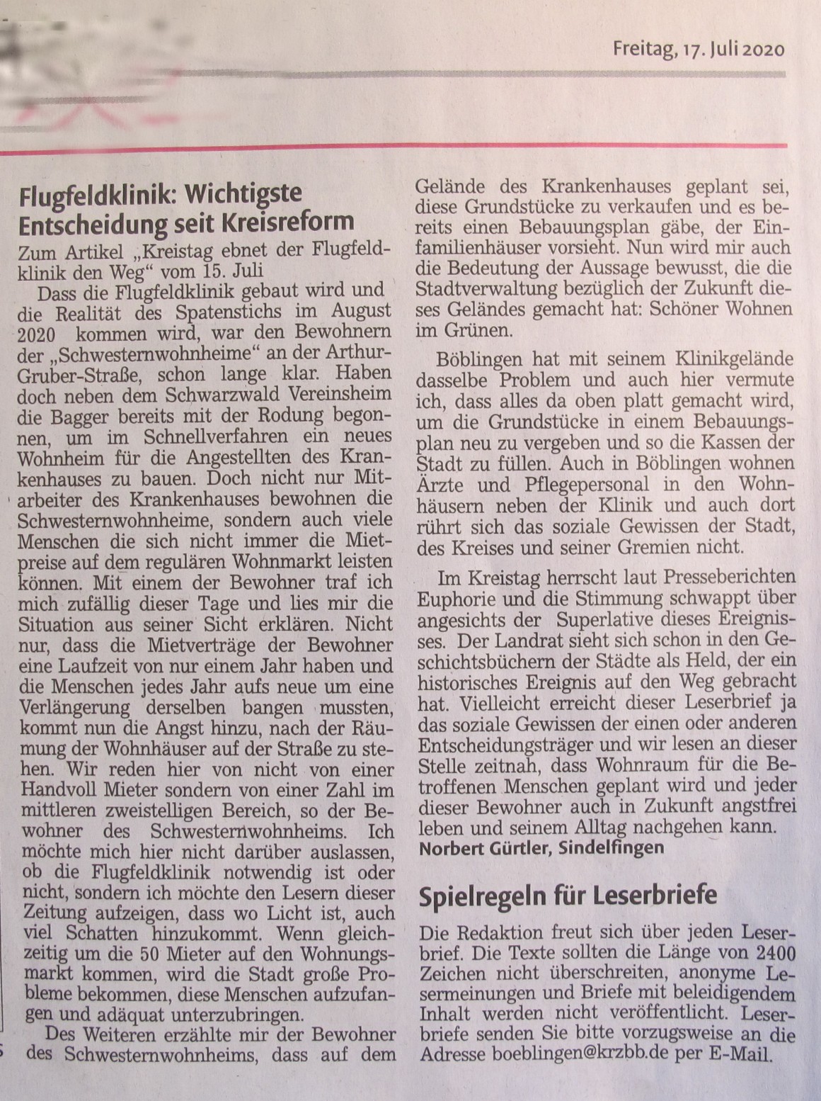 aus der KRZ-BB vom Freitag 17.Juli 20 (mit Genehmigung durch KRZ-BB)